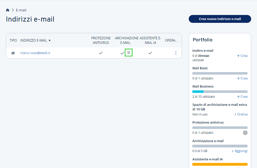 - Apri Archiviazione e-mail come amministratore. Per farlo, clicca sull'icona dell'archiviazione e-mail accanto all'indirizzo e-mail in questione.