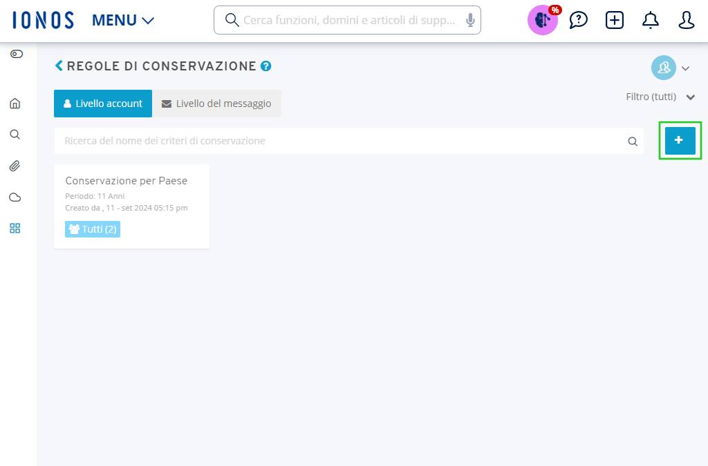 - Nella barra di navigazione sulla sinistra, clicca su Regole di conservazione.