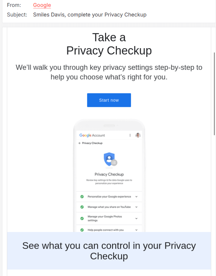 Se non puoi disporre delle opzioni di design più efficaci per attirare l’attenzione, dovrai trovare altri modi per convincere l’utente, ad esempio scrivendo un buon testo in grado di affascinare e conquistare i lettori e le lettrici. Nel migliore dei casi, l’utente seguirà anche una call-to-action. Per una newsletter di questo tipo, è importante scrivere in maniera concisa: grandi blocchi di testo tendono a spaventare chi legge. Puoi anche includere delle liste per facilitare la lettura.