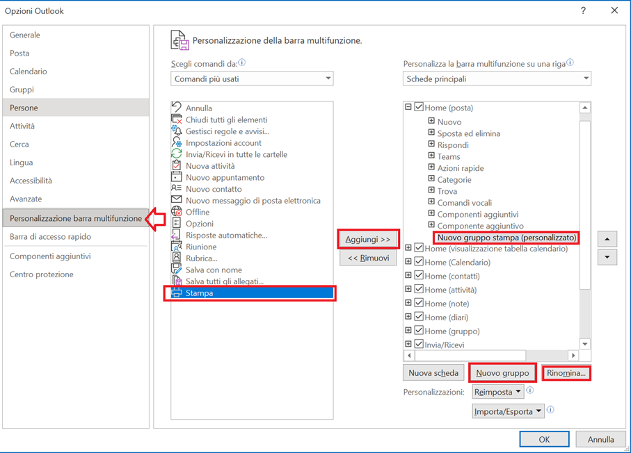 Aggiungere il pulsante “Stampa” alla barra multifunzione di Outlook
