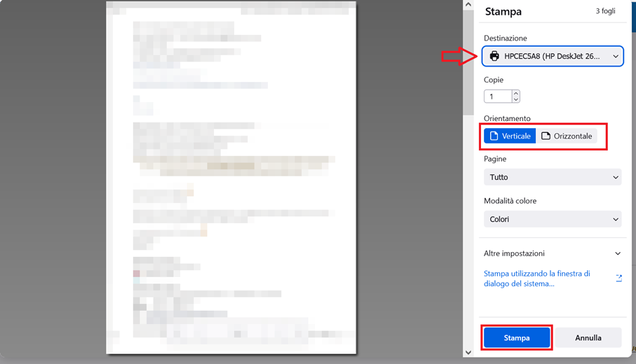 - Clicca sul pulsante rettangolare “Stampa” per avviare il processo di stampa.