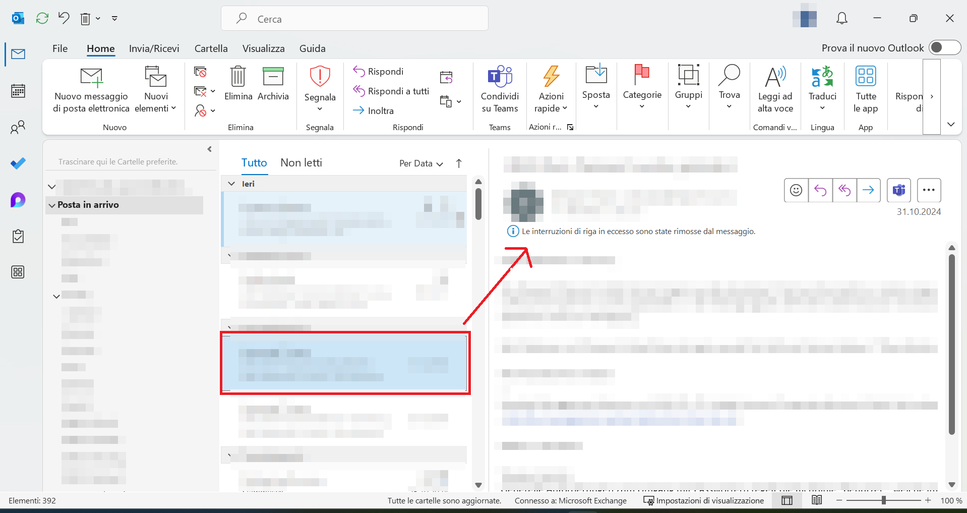 Primo passaggio: evidenzia l’e-mail corrispondente come descritto sopra o aprila in una finestra separata.