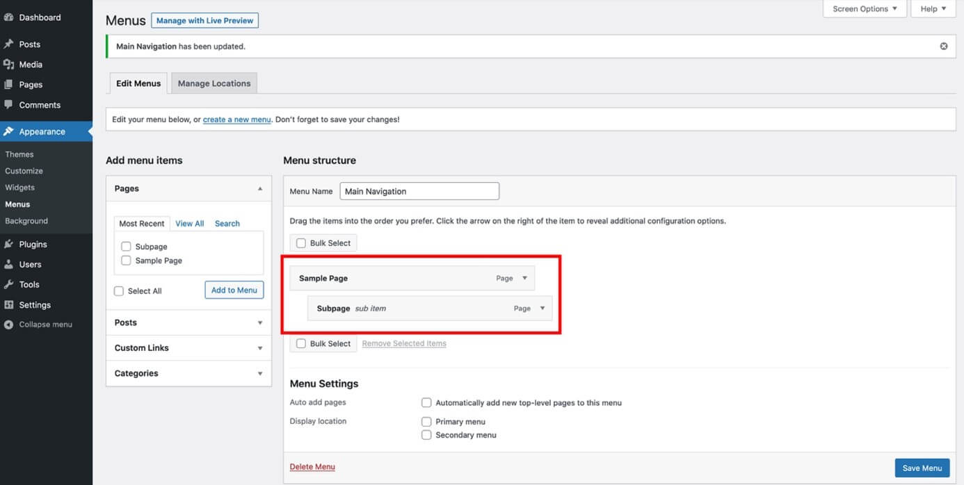 Primo passaggio: creare un nuovo menu WordPress