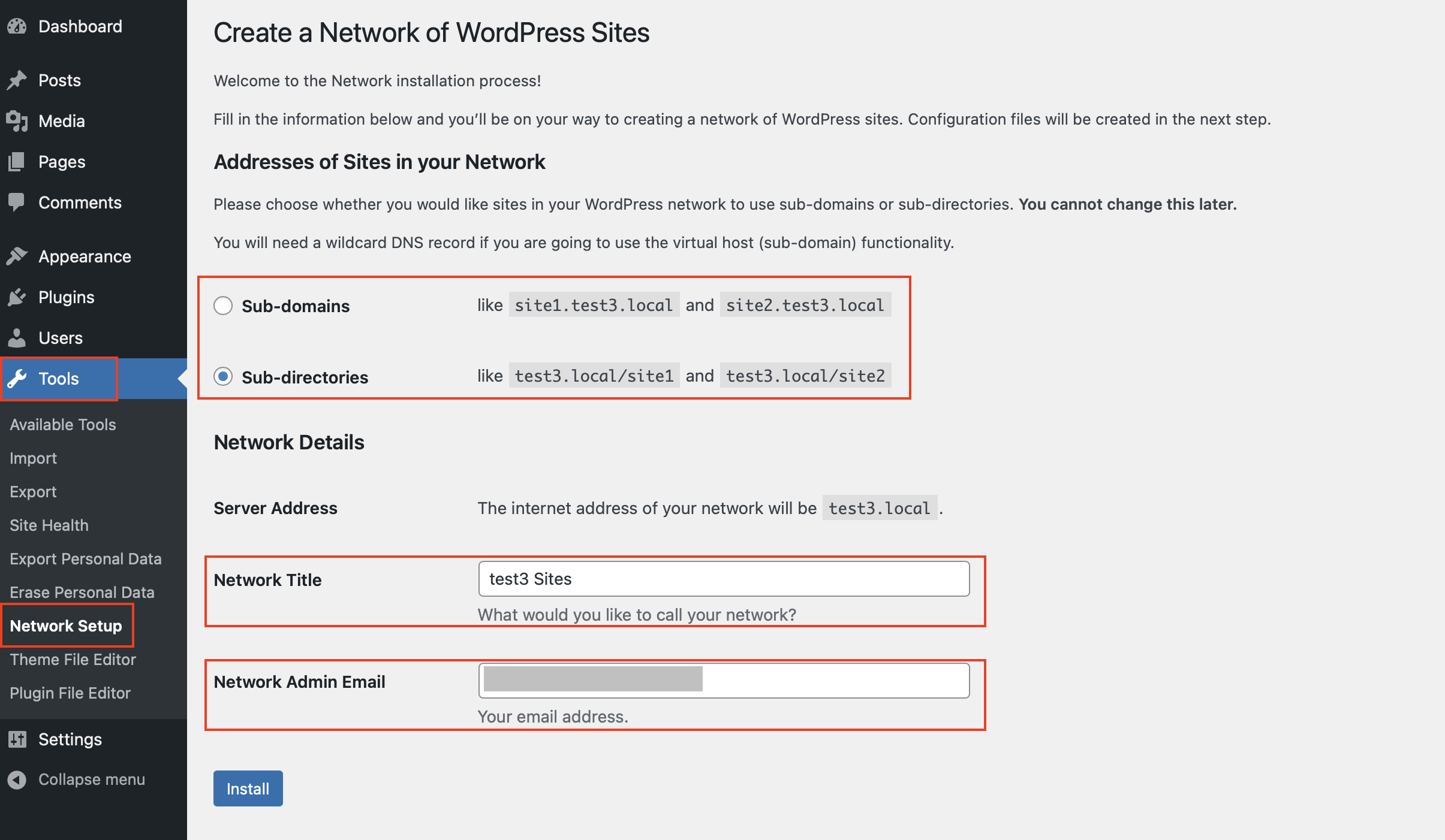 Una volta completati tutti i passaggi discussi finora, segui la nostra guida per installare WordPress Multisite. La configurazione di WordPress Multisite funziona fondamentalmente così: