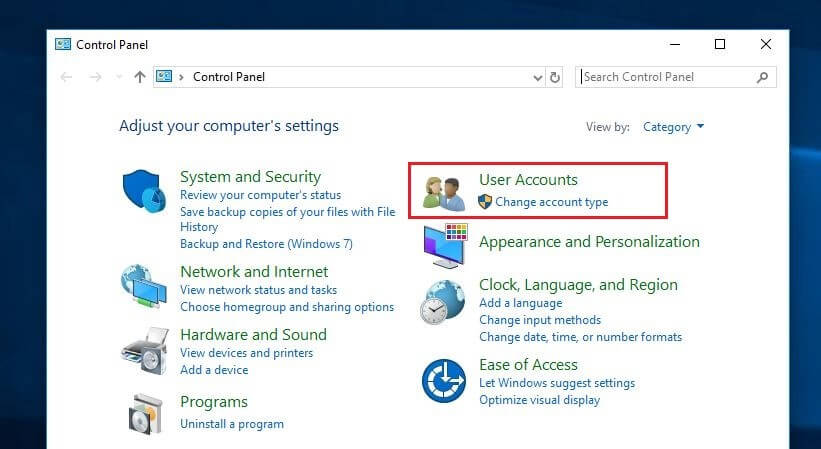 Per farlo, aprite il pannello di controllo e scegliete l’area “User accounts”.