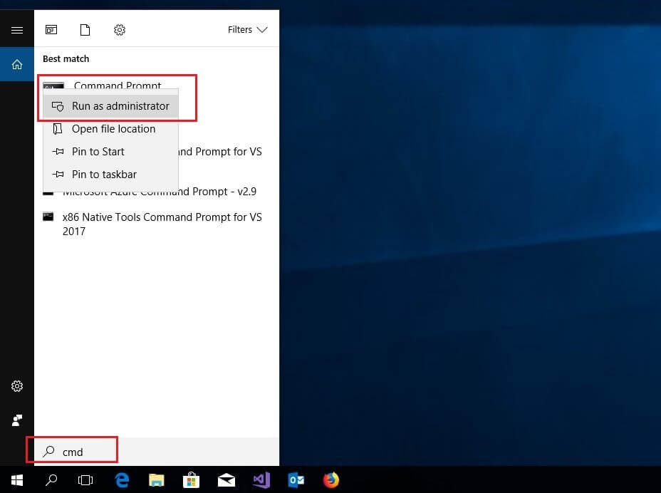 Questi diritti vi servono in realtà già dal primo passo, per avviare il prompt dei comandi da amministratore. Per fare questo, digitare “cmd” nella ricerca di Windows, fate clic con il tasto destro del mouse sull’icona del prompt dei comandi e selezionate l’opzione “Run as administrator”.