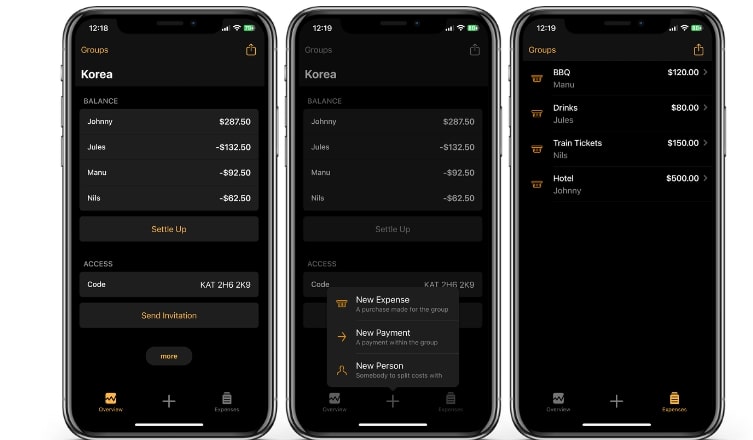 Splitwise raggruppa le spese in gruppi. Puoi aggiungere altri membri indicando il numero di telefono o l’indirizzo e-mail, in modo che abbiano accesso diretto. Infatti, solo se ogni persona può gestire le proprie spese e transazioni, il sistema funzionerà nel lungo periodo.