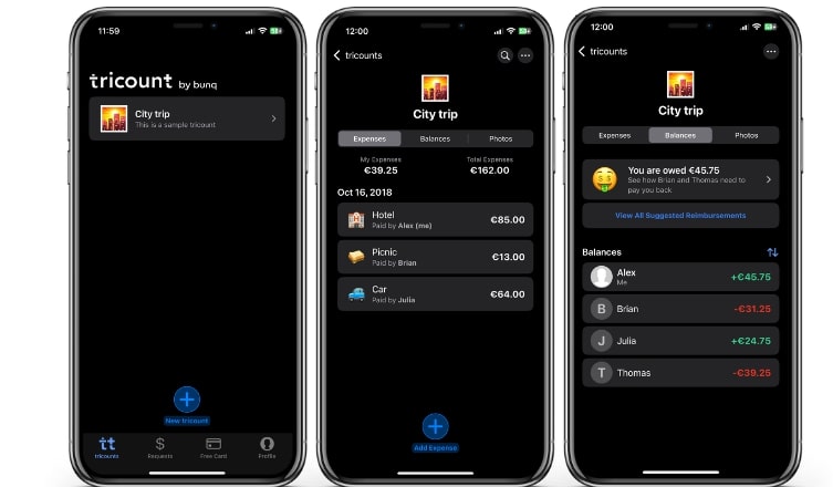 | Tricount | Android, iOS, web | Spese illimitate, nessuna registrazione, integrazione PayPal, backup online, convertitore di valuta, calcolatrice, caricamento di foto, modalità offline, analisi mensili, importazione da Splitwise | ✗ (non è disponibile una versione premium) |