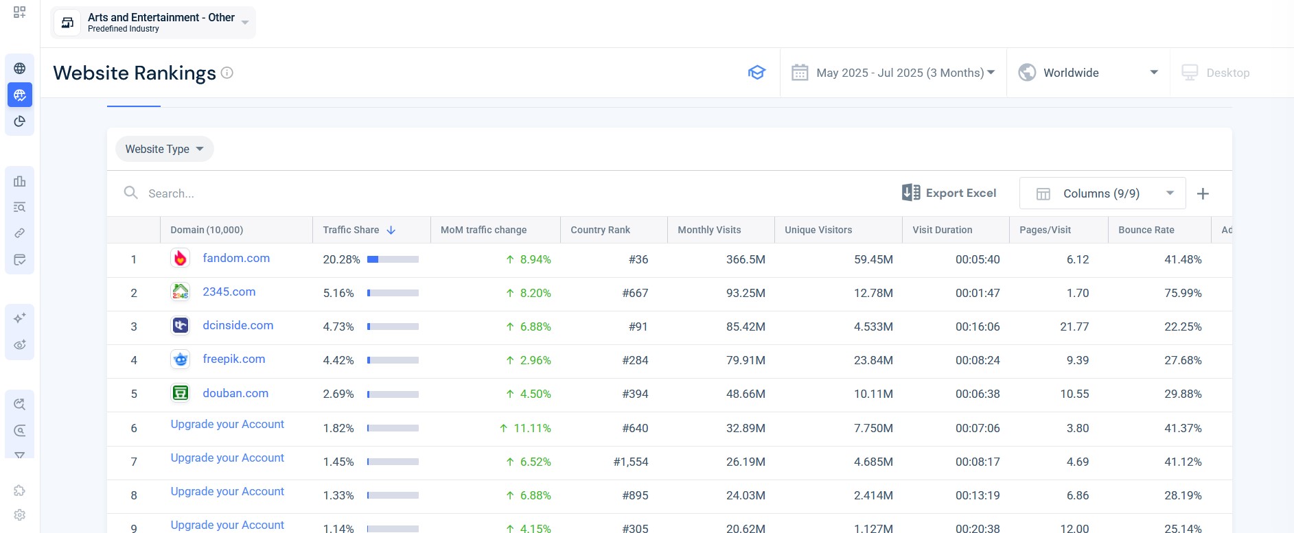 Non è sempre possibile ottenere informazioni precise sul traffico con SimilarWeb. Ciononostante, lo strumento offre una buona visione d’insieme e fornisce informazioni dettagliate anche sulle singole fonti di traffico. Il ranking dei siti principali permette di scoprire in pochi clic i siti più visitati in tutto il mondo in determinati settori.