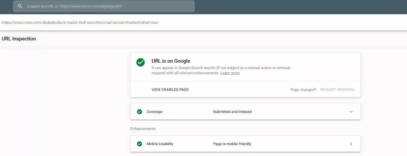 La verifica dell’URL è uno strumento tanto potente quanto ridotto che può essere utilizzato a vostra scelta dal menu a sinistra o direttamente attraverso il campo di ricerca nella barra del menu di Google Search Console. Ogni URL appartenente al dominio verificato può essere monitorato attraverso lo stato di indicizzazione. Qui è possibile richiedere l’indicizzazione di qualsiasi pagina che non sia ancora stata aggiunta all’indice Google. Inoltre la Search Console fornisce consigli per il miglioramento della pagina, nel caso in cui sia necessario, come ad esempio la facilità d’utilizzo da dispositivo mobile.