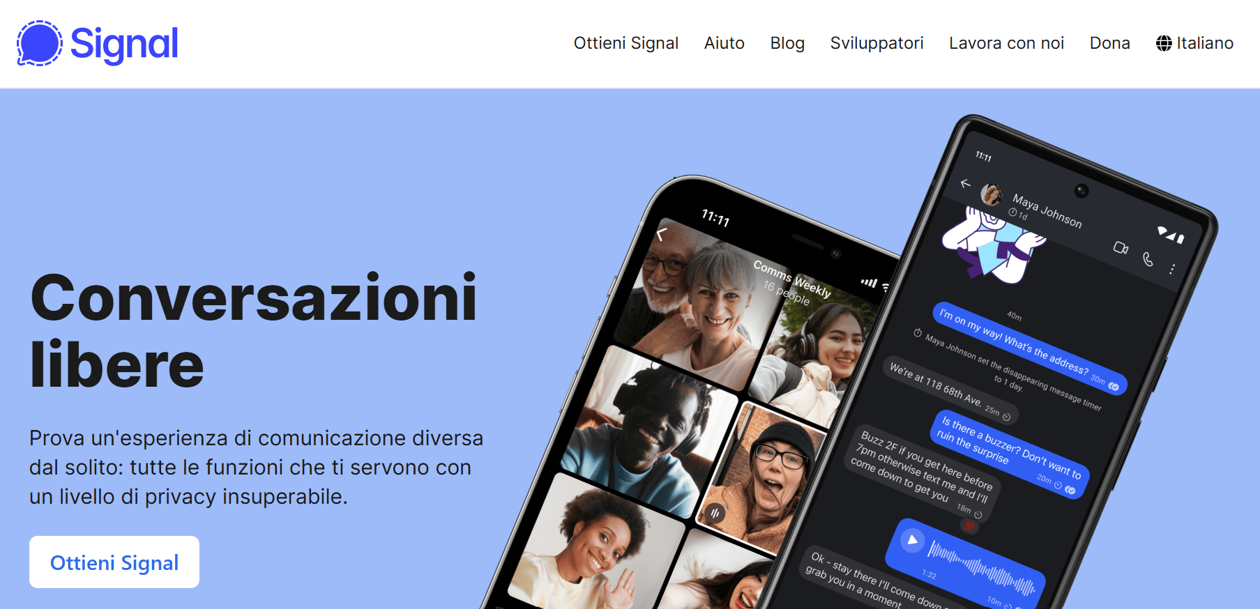 | Signal | iOS, Android, macOS, Windows, Linux | End-to-end | Più di 100 milioni | Gratuito |
