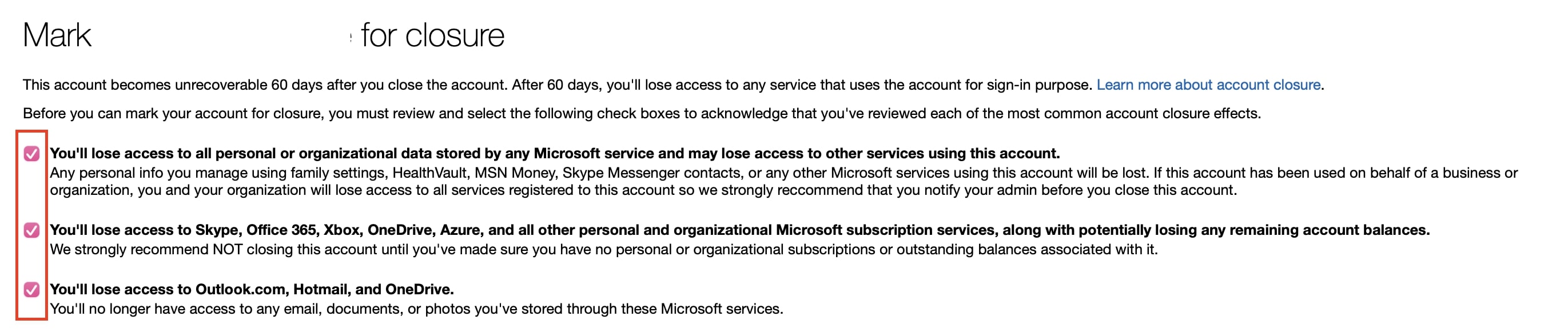 Prima di procedere alla cancellazione, ricorda che, eliminando l’account Microsoft, perderai anche i seguenti servizi: