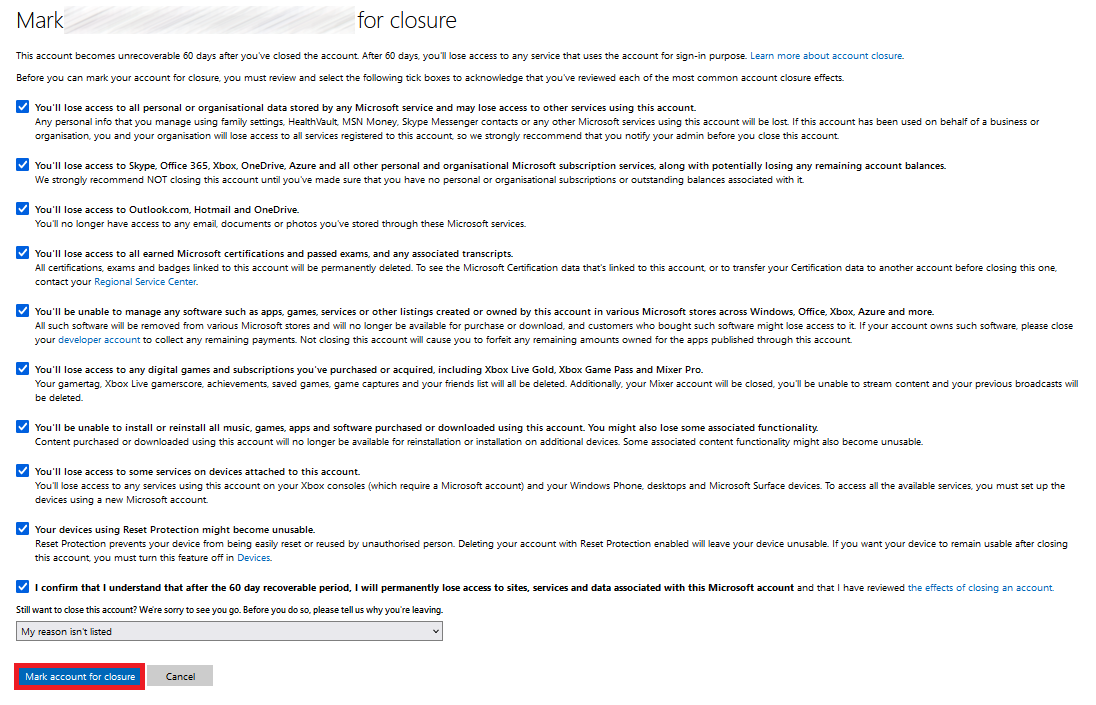Se elimini il tuo account Microsoft, ciò influenzerà tutti i dati a esso associati, inclusi i dati Skype ora archiviati in Microsoft Teams. Allo stesso modo, verranno eliminati OneDrive, Outlook e tutti gli altri servizi Microsoft collegati al tuo account.