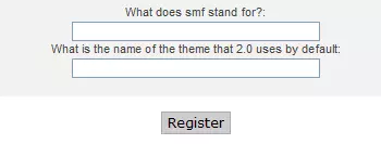 Oltre ad esercizi matematici, nei captcha vengono utilizzati anche compiti logici o domande su nozioni generali, spesso con un riferimento tematico alla propria applicazione web. In un forum su un software SMF (acronimo di Simple Machines Forum), l’utente deve rispondere a due domande sull’argomento prima di poter procedere con la registrazione.