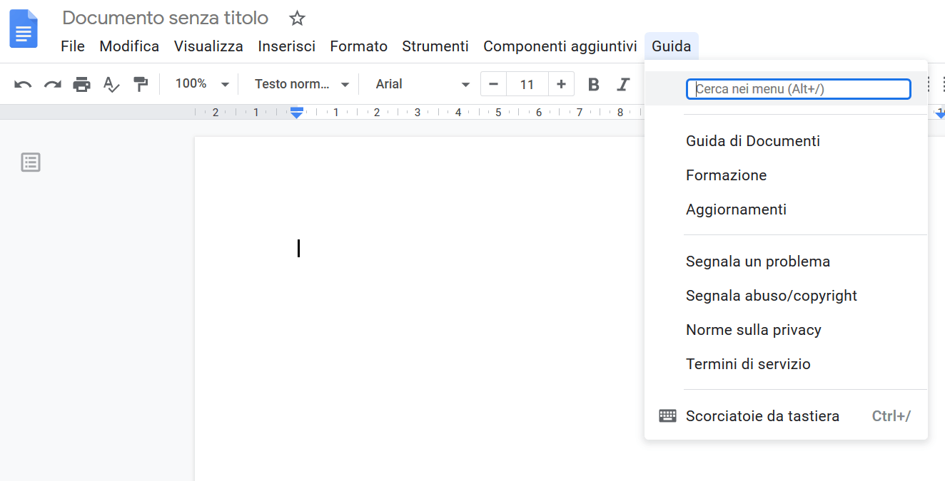 Visualizzare le combinazioni di tasti direttamente in Google Docs