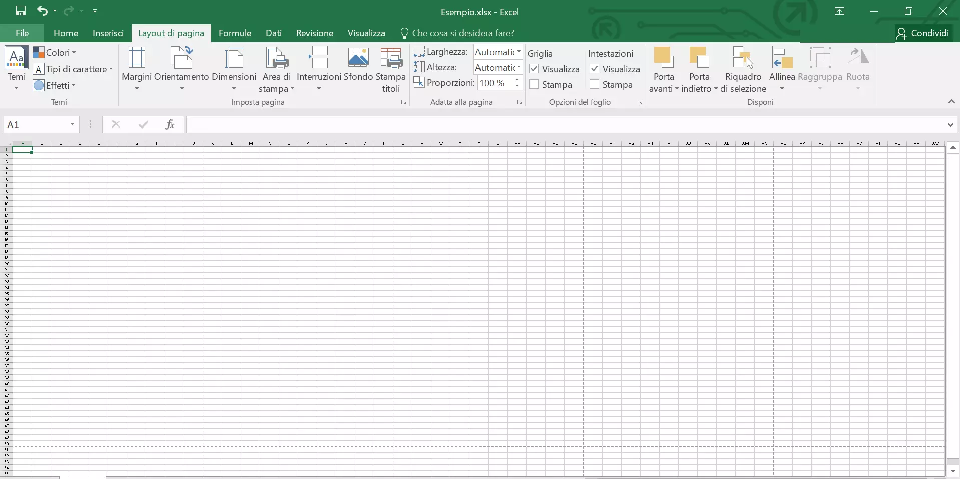 - Nelle impostazioni di default, quest’area è definita in modo tale che tutte le colonne e le righe possano essere contenute in un foglio DIN A4.