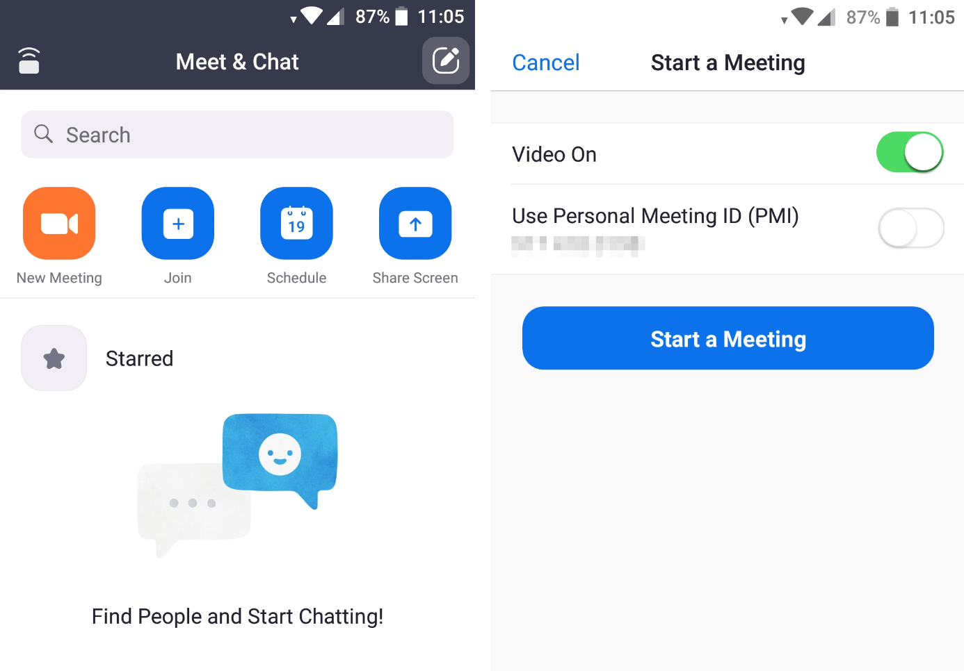 - Premete il pulsante “Nuova riunione” e selezionate se volete accendere la fotocamera o tenerla spenta; l’opzione di condivisione dello schermo non è disponibile nelle varianti di Zoom per iOS e Android.