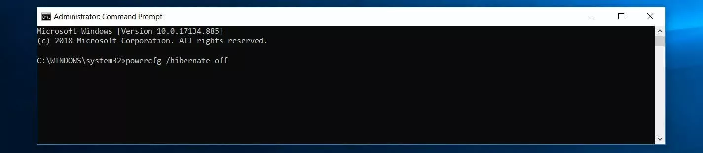 Cancellare hiberfil.sys tramite il prompt dei comandi di Windows 10:
