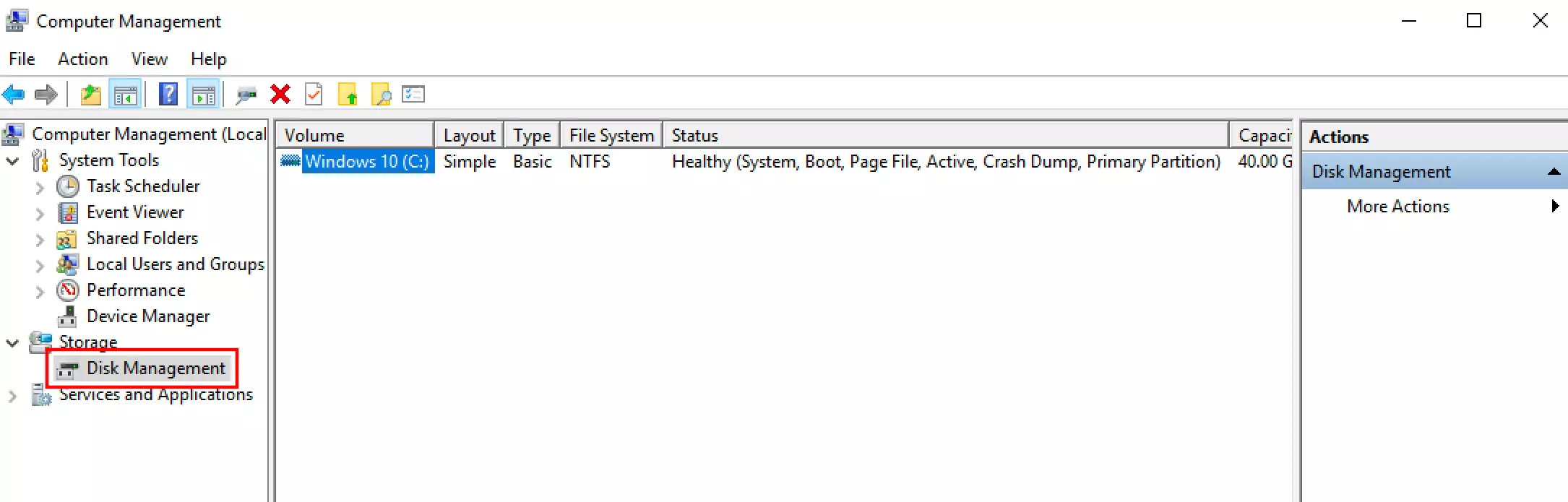 - Selezionate nella finestra a sinistra la voce “Gestione disco” (che si trova sotto “Archiviazione”).