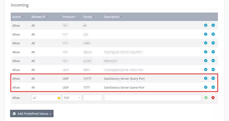 Nel passaggio successivo, dovete assicurarvi che gli utenti possano accedere alle porte di gioco rilevanti sul vostro server per Satisfactory. In particolare, ciò riguarda le seguenti tre porte:
