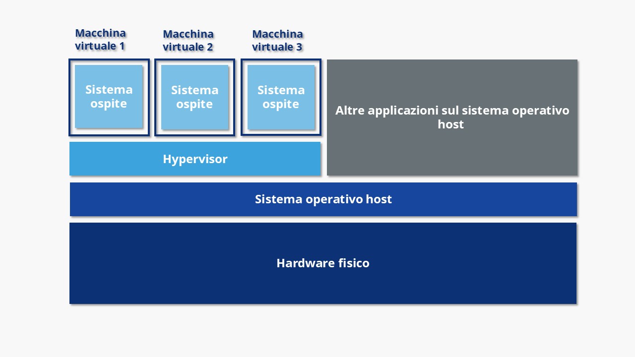 Nella virtualizzazione hardware, le risorse di un sistema fisico vengono suddivise tra più macchine virtuali. Ogni VM funziona isolata dall’host e dalle altre VM, offrendo vantaggi in termini di sicurezza, stabilità e flessibilità.
