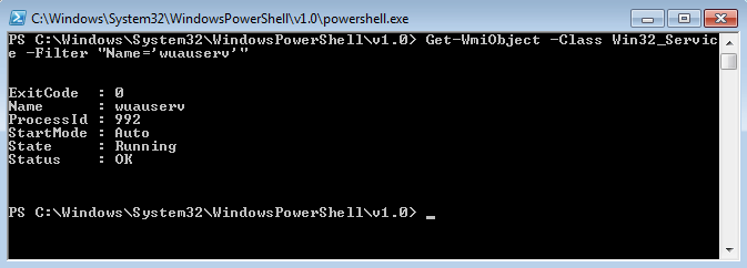 Get-WmiObject -nomecomputer -Class Win32_Service -Filter "Name='wuauserv'" | Get-Member -Type Method