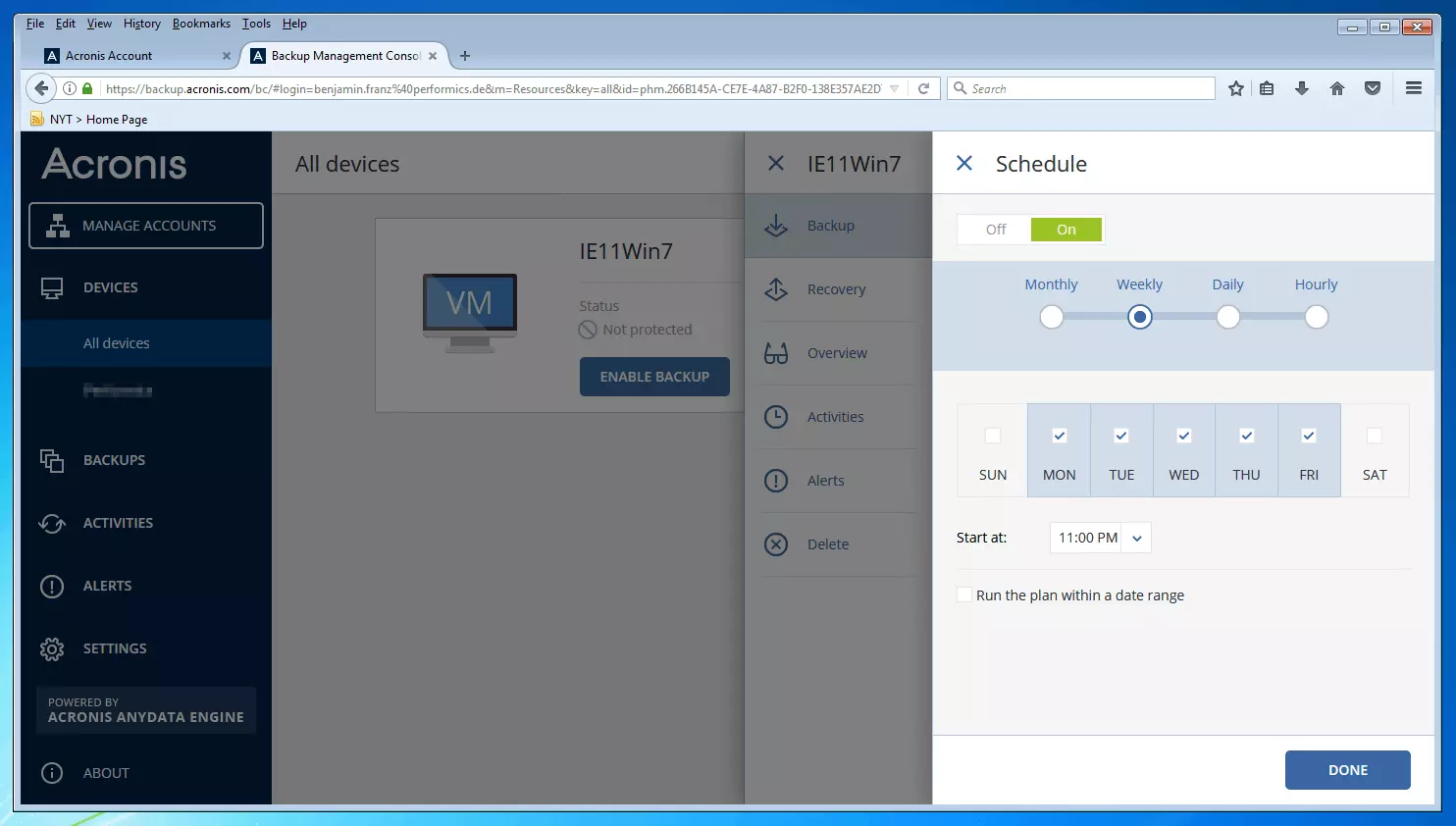 Aprite la versione cloud della console di gestione di backup attraverso il vostro browser per salvare il contenuto dei dispositivi connessi a Internet.