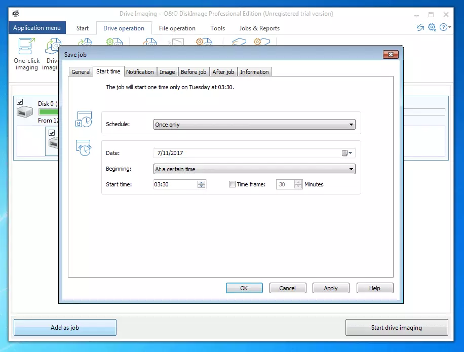 Il processo di imaging si avvia manualmente oppure si crea un cosiddetto Job (task). Come parte del processo di backup dovete definire i backup automatici. In questo modo è possibile eseguire regolarmente il backup dei dati.