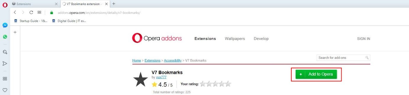 - Richiamate il sito dell’estensione V7 Bookmarks e fate clic su “Aggiungi a Opera” per installare l’add-on.
