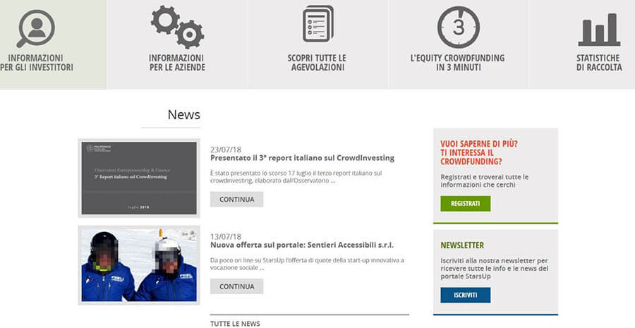 Rispetto ad altre piattaforme, StarsUp si contraddistingue per l’alto valore informativo, in quanto informa l’azienda di tutte le agevolazioni possibili e fornisce statistiche relative al crowdinvesting, oltre a proporre link utili che aiutano le aziende a muoversi in questo particolare settore. Anche da questo aspetto emerge la sua natura professionale che impone quindi solo a dei veri professionisti di pubblicare le offerte su questo portale. Anche il design del sito è prettamente professionale, ma risulta difficile navigare tra le varie offerte al di fuori di quelle presenti sull’homepage.