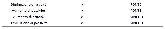 Alla base del calcolo di fonti e impieghi che derivano da operazioni riportate nello Stato patrimoniale regna la seguente regola: