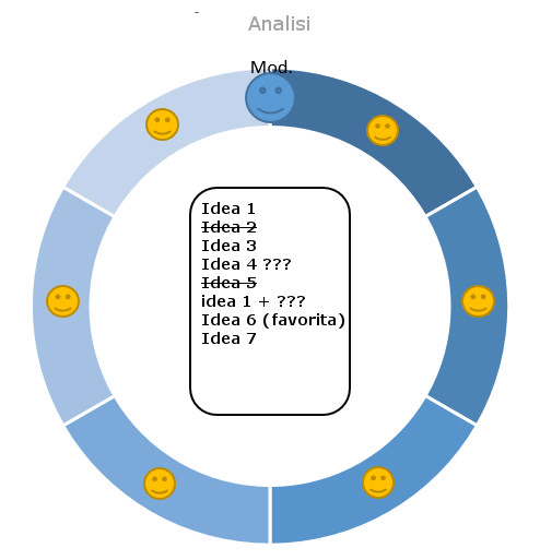 - Successiva analisi delle idee e discussione aperta (un'ora circa). Può essere scelta solo un'idea.