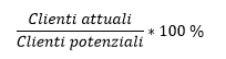 Anche attirando nuovi clienti all’interno di un mercato, la crescita attraverso la penetrazione di mercato rimane comunque limitata, poiché limitato è il numero stesso dei clienti al suo interno. Per sfruttare il potenziale di crescita della vostra azienda con questa strategia dovreste innanzitutto essere a conoscenza del vostro grado di penetrazione di mercato: per scoprire qual è basta dividere il numero dei vostri clienti per il numero totale dei clienti potenziali: