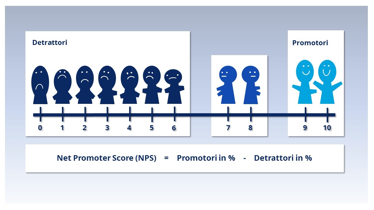 Vi spieghiamo come funziona il sondaggio sulla soddisfazione dei clienti secondo Reichheld e in base a quale formula viene calcolato il Net Promoter Score.